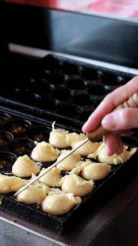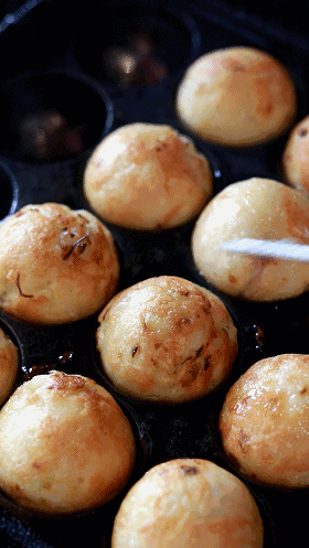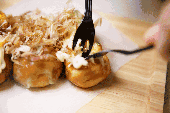 招牌章鱼小丸子 肚子咕噜咕噜叫 心急吃不了热丸子 为保证产品的口感以及新鲜度 所有的章鱼小丸子都是现点现做的 看着工作人员先是淋下一层独家配方的粉浆 放入章鱼和洋葱粒慢火煎烤 不时用小钢签熟练的翻滚着一个个丸子 转眼蛋浆滋滋地冒泡凝固,丸子变的金黄 当做好的招牌小丸子放在面前的时候 真的一点也没有辜负我们的等待 实在时太香了! 趁着刚出炉的热乎劲 酥脆中带着软糯的口感 而且这口章鱼小丸子是真的吃得到章鱼 一口接一口,吃货妹竟然一下子就吃完了三颗 温热柔软的内陷+火候适中的外皮 =有料!勇敢爆出来 样样食材都新鲜过人,光是颜值就令人垂涎欲滴,尝试了招牌章鱼小丸子后,便爱上了那种一片片柴鱼片的滋味~